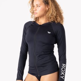 Roxy Women’s Swim & Surf New Essentials Long Sleeve Hoodie Zipped Rashguard | Bright White