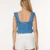Embody your inner chic surfer girl in the Coastal Cruisin top. Featuring a soft stretch cotton rib with garment wash, flirty ruffle sleeve and a sweetheart neckline, this piece is perfect for a warm day or night.