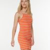 Flaunt your tan lines in the Cool Sunsetz mini dress. This flattering piece features a high neckline and sailor stripes, making it the perfect choice for a warm summer night on the town.