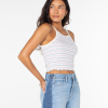 An easy piece to throw on for a walk to the beach, the Cool Sunsetz top features a timeless stripe and an accented lettuce hem.