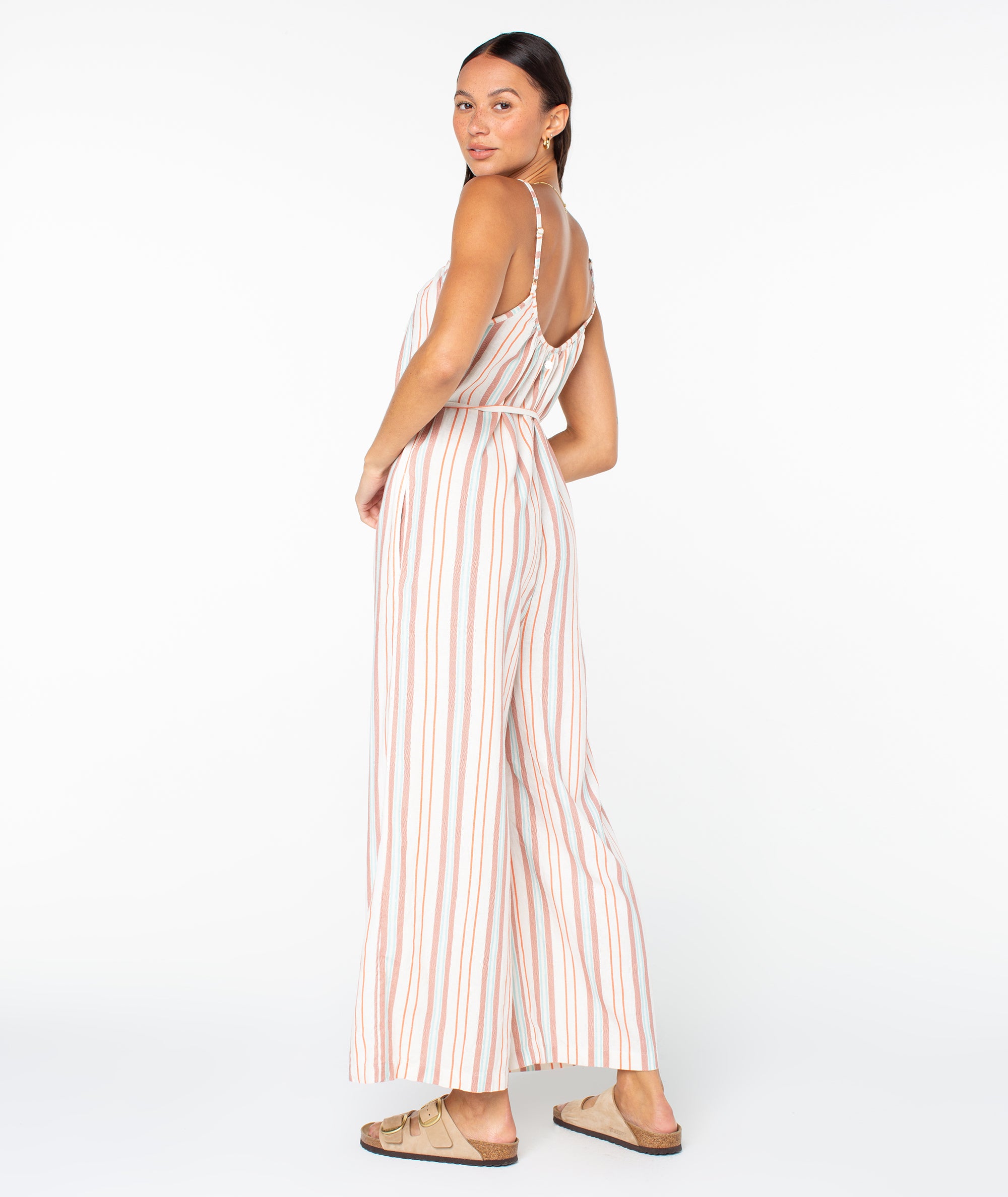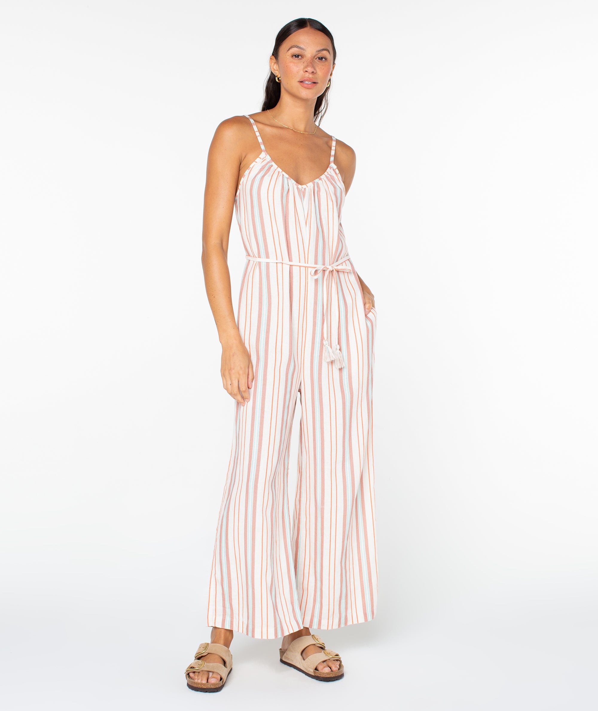 Function and fashion meet with the Gale jumpsuit, featuring a tie waist and a wide leg. Crafted from a linen blend fabric, this piece is a perfect spring closet staple.