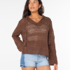 The Hippie Love sweater is an essential spring piece. Featuring a detailed knit and a relaxed fit, this sweater is ideal to throw on over a layering piece or a bikini after a day near the water.