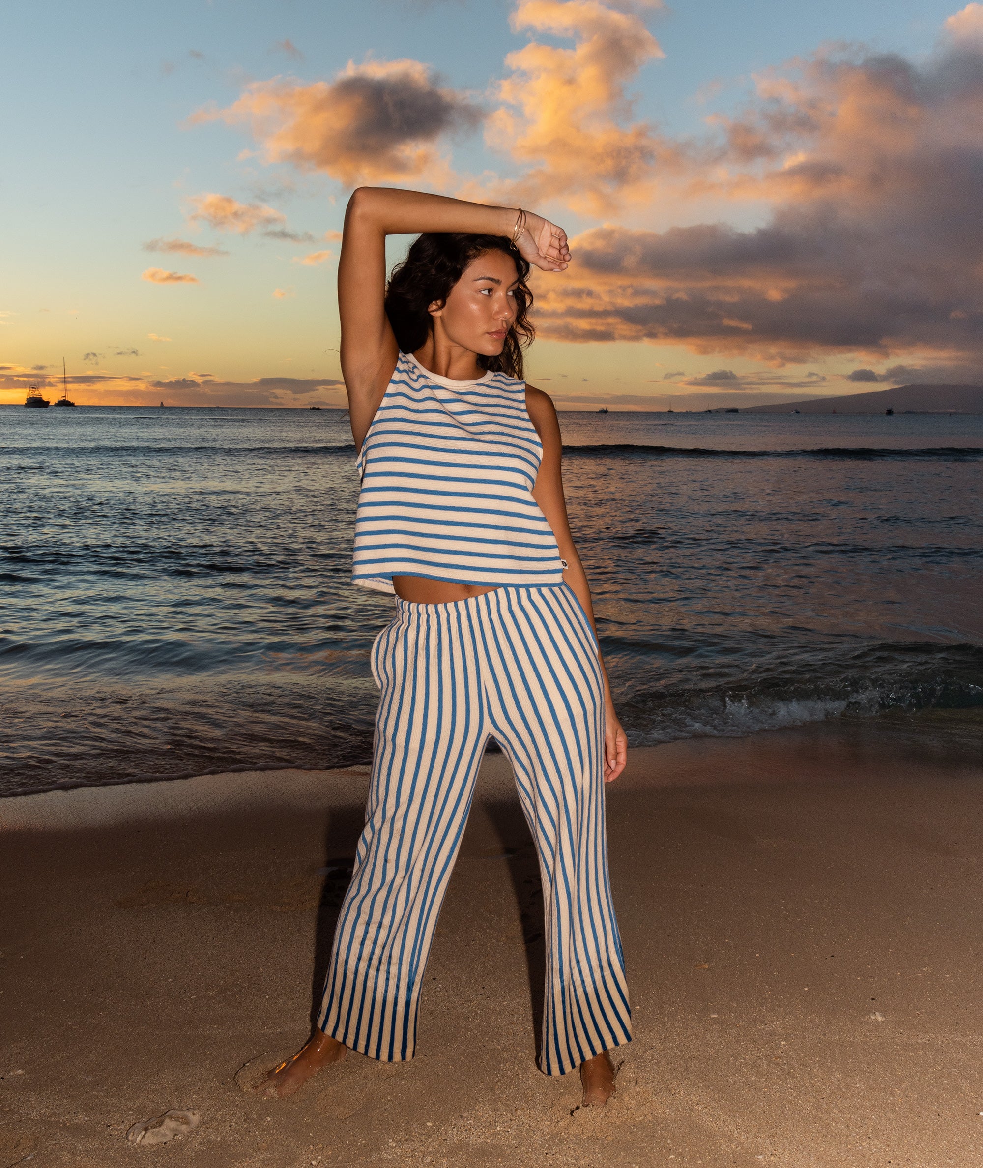 The Java Stripe Cropped Pant is the perfect blend of comfort and effortless style. With its textured fabric and relaxed fit, these striped pants add a laid-back vibe to your casual look while keeping you cool all day long.