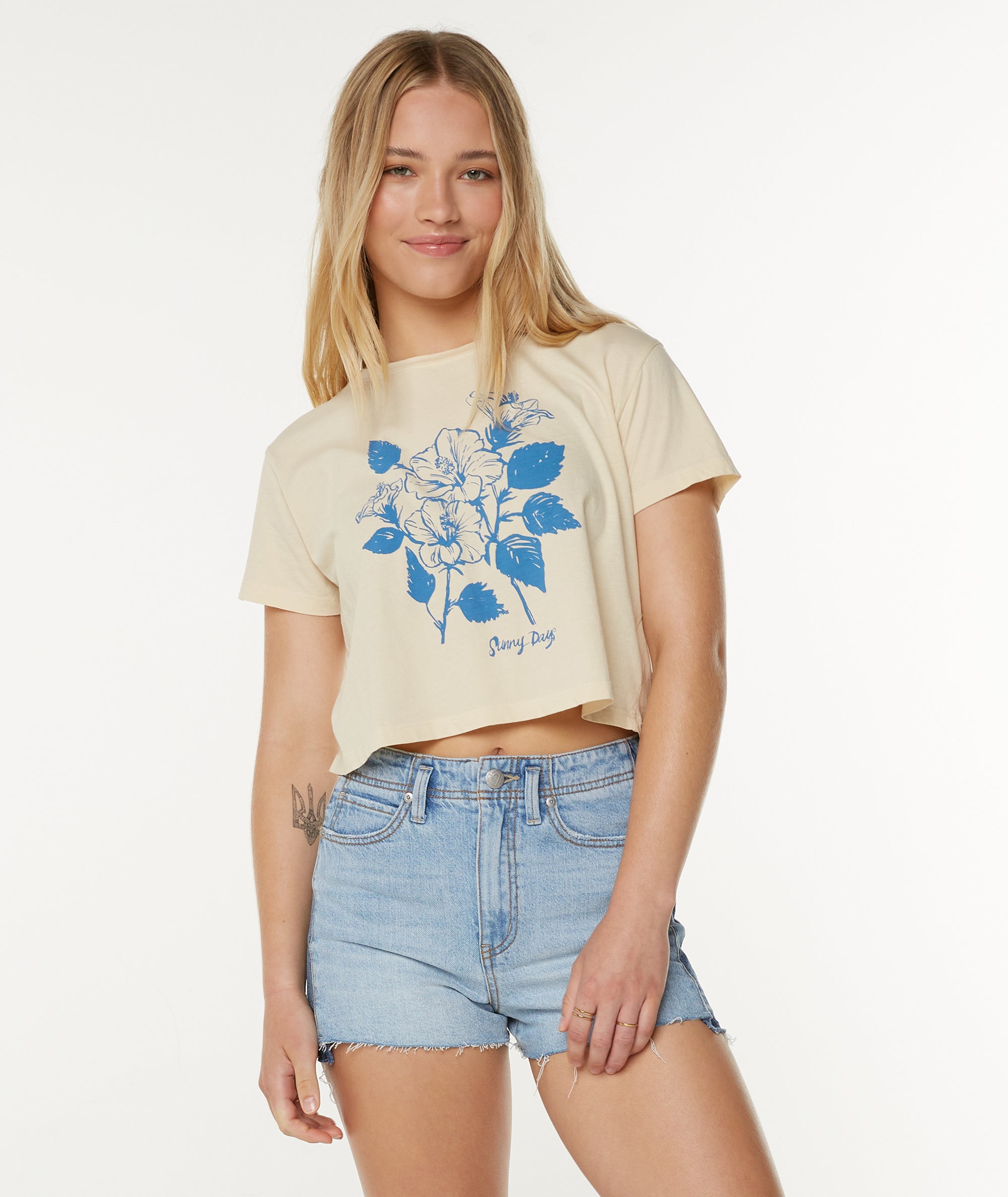 Roxy Women’s Sunny Days Cropped Boxy Tee | Parchment Sunny Days