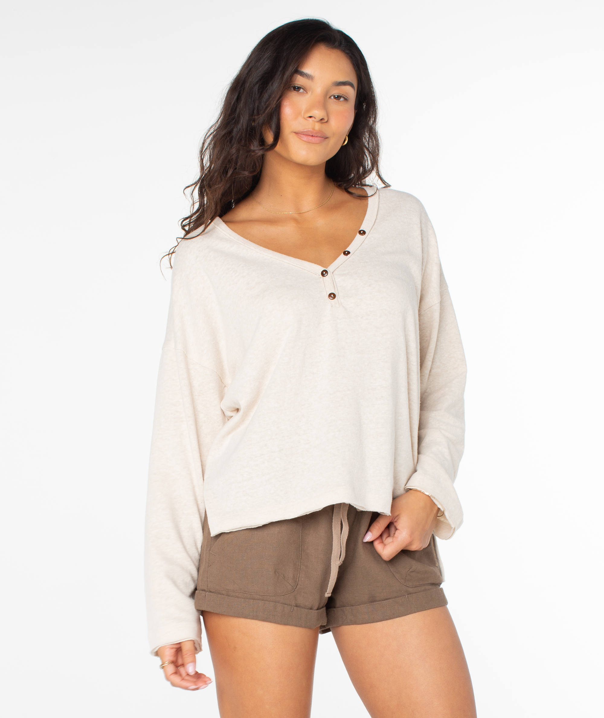 Perfect for lounging on a warm spring day, the Weekend Story top features a scoop neckline and button details. This cotton blend top is an effortless piece, easy to throw on for any occasion.
