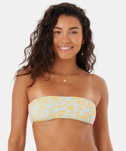 Roxy Women’s Swim & Surf Tapestry Patchwork Bandeau Lace Up Bikini Top | Multi Floral Colorblock